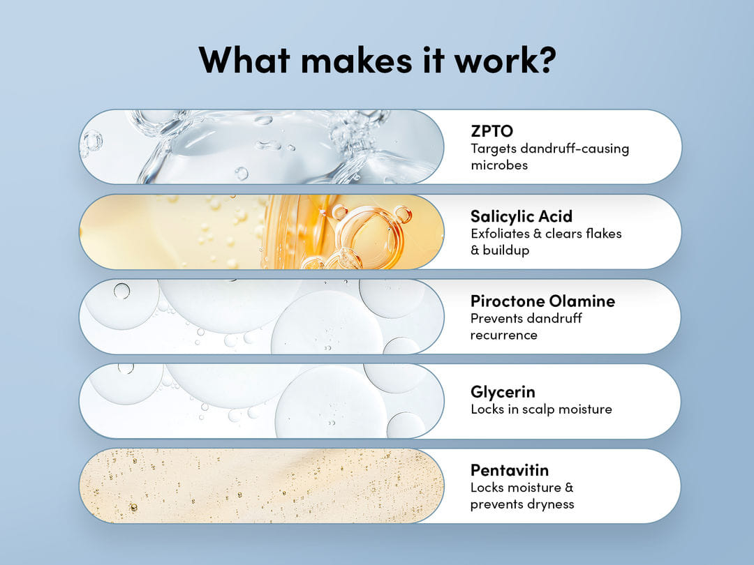 - Kills Malassezia fungus (primary dandruff cause)