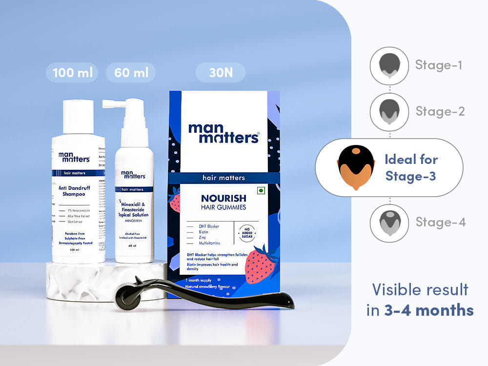Stage 3 Hair Regrowth Kit for Dandruff + Derma Roller - 1M