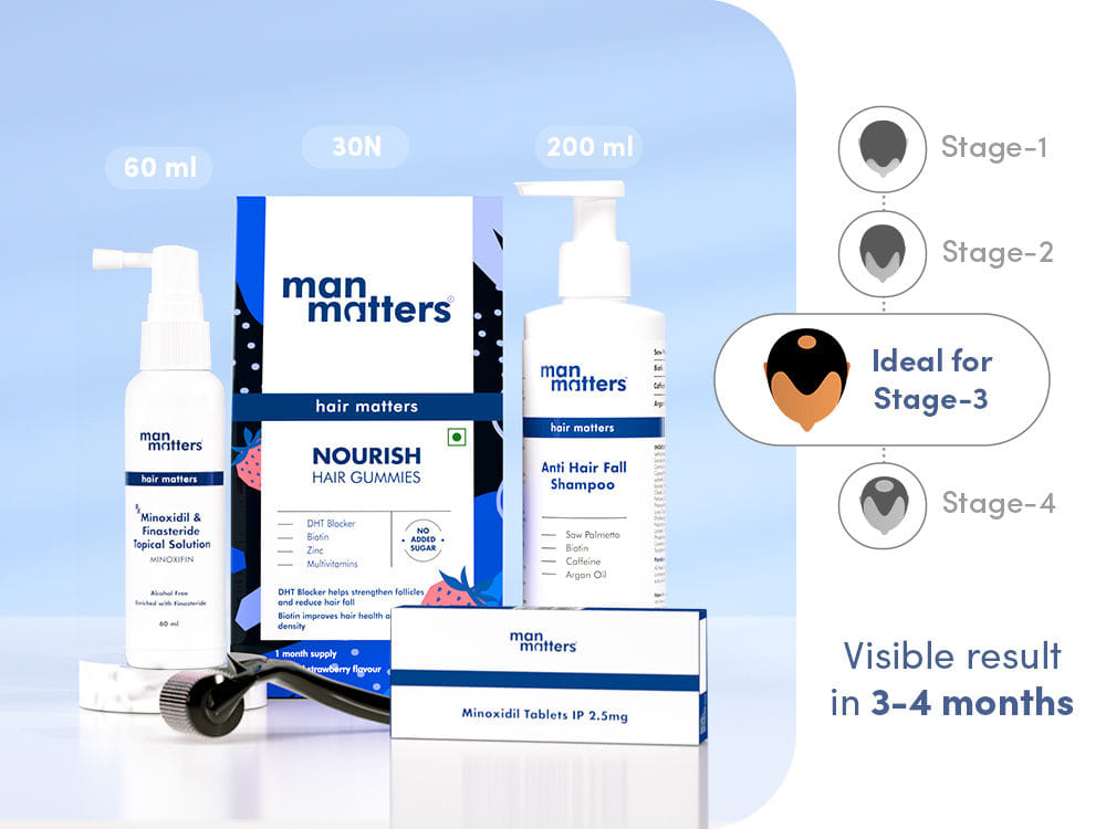 Stage 3 is when you are starting to experience bald spots around the crown and have a receding hairline