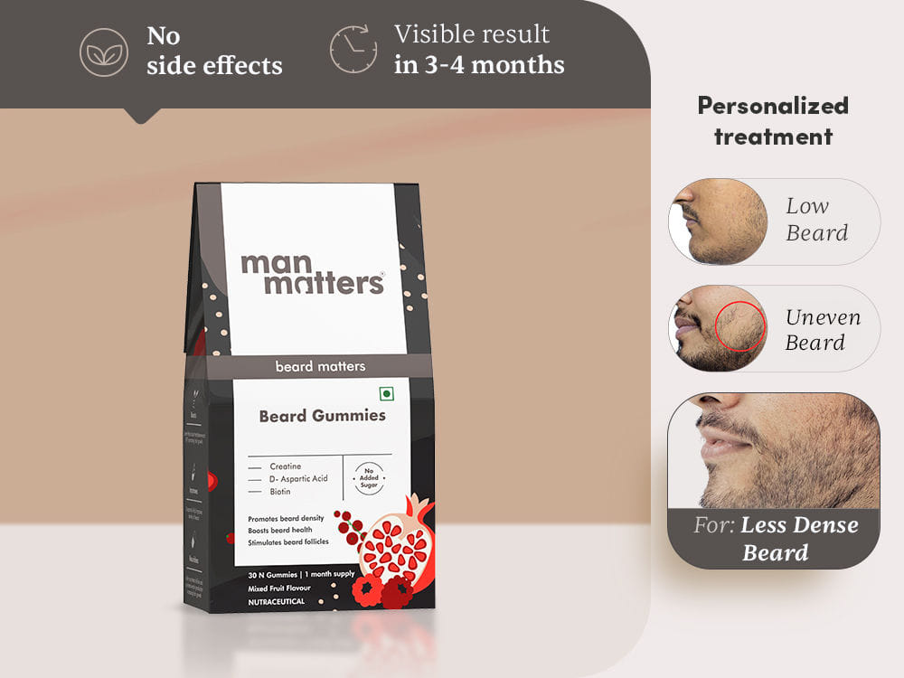 Nutrient Support: Biotin, a key ingredient in Beard Gummies, fortifies beard hair by improving keratin structure and strengthens weak hairs to improve thickness.