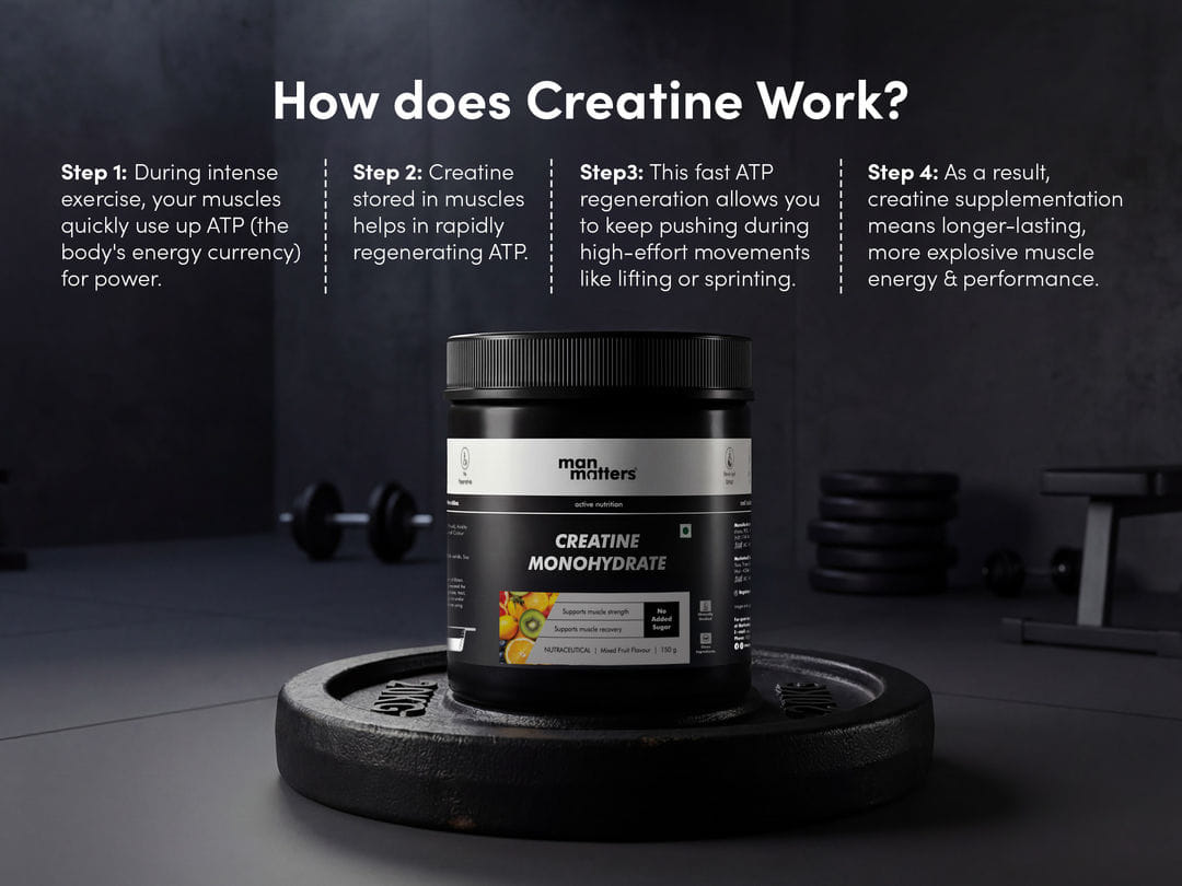 Creatine helps replenish ATP levels faster, reducing muscle fatigue and supporting quicker recovery between workouts.